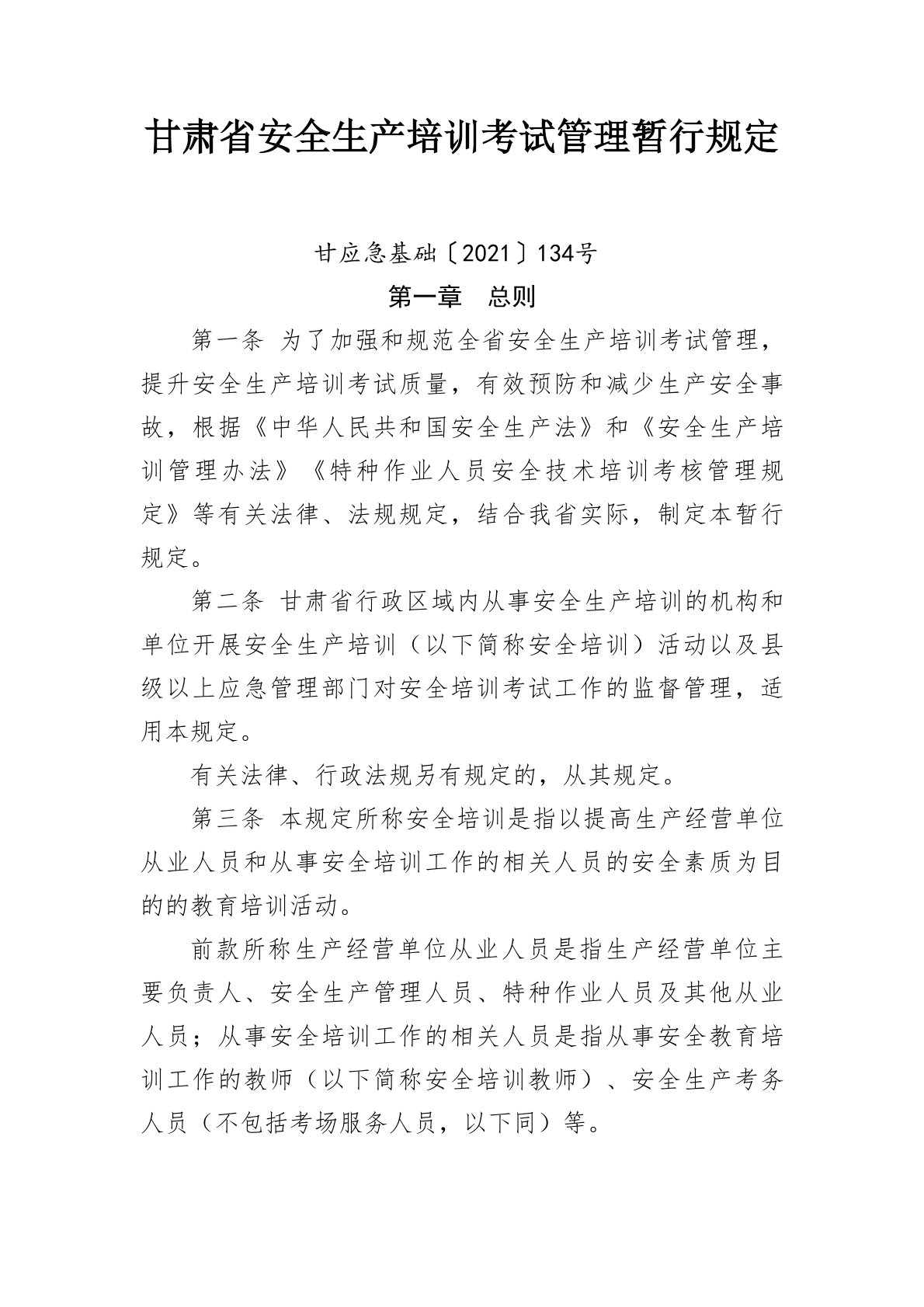 甘肃省安全生产培训考试管理暂行规定