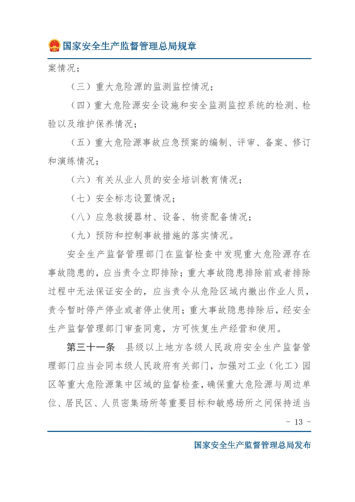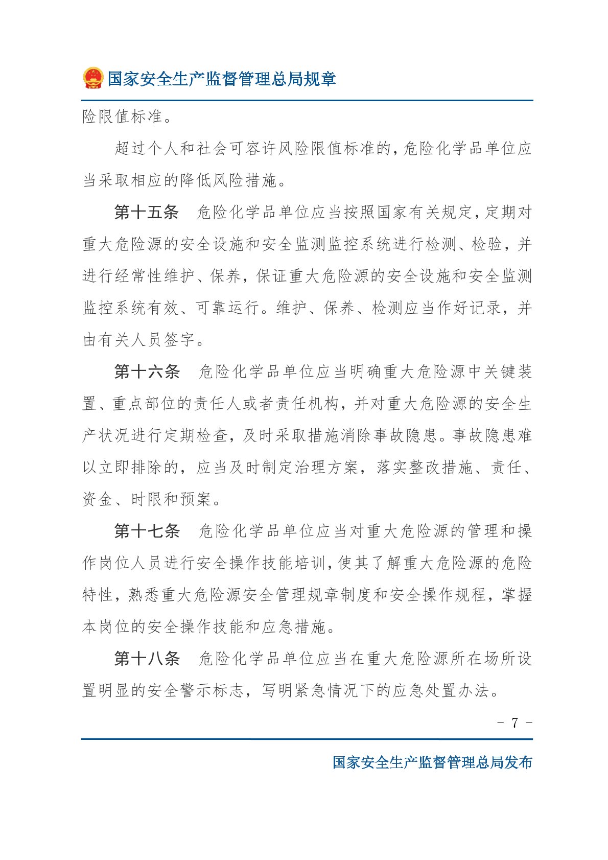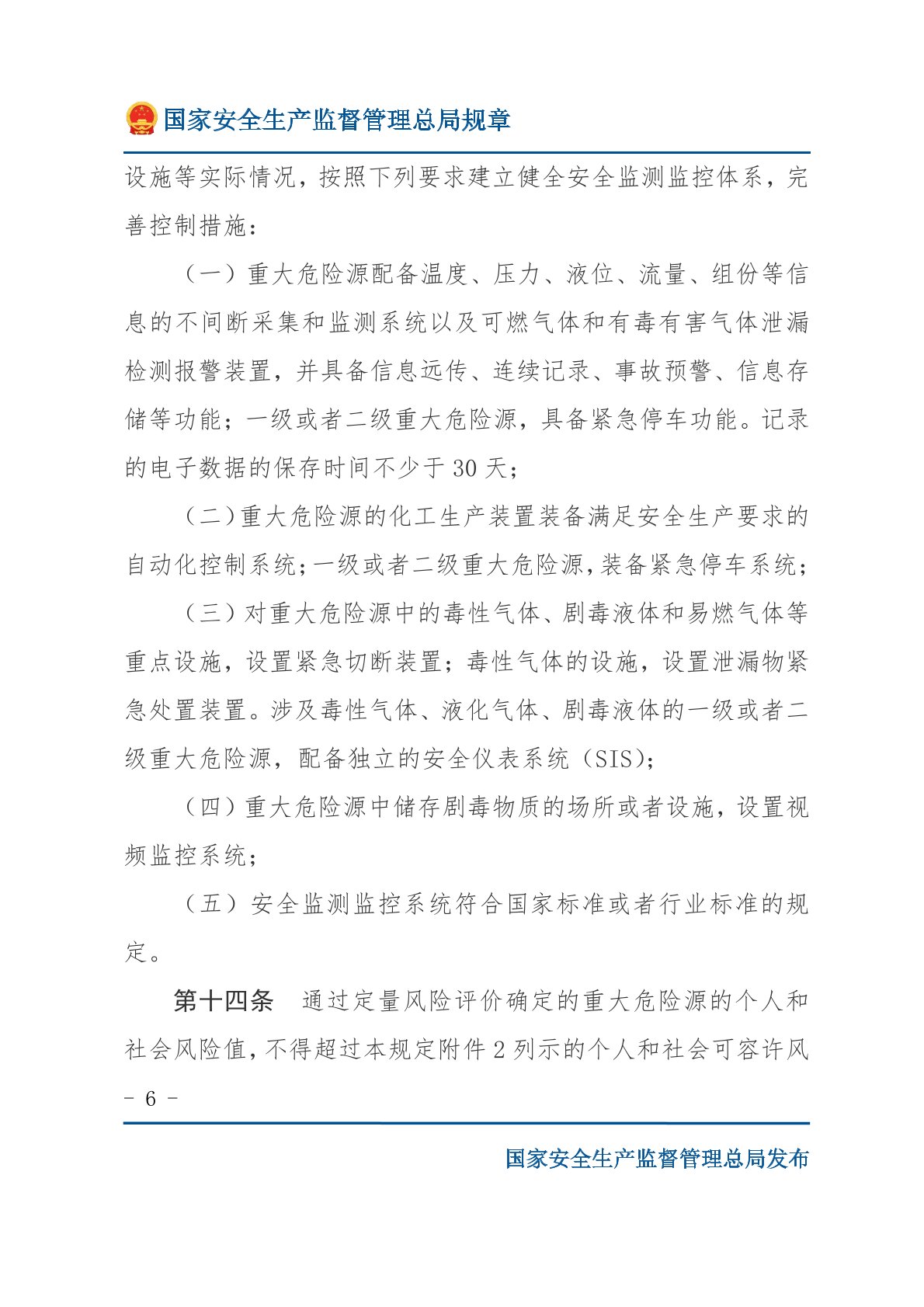 危险化学品重大危险源监督管理暂行规定