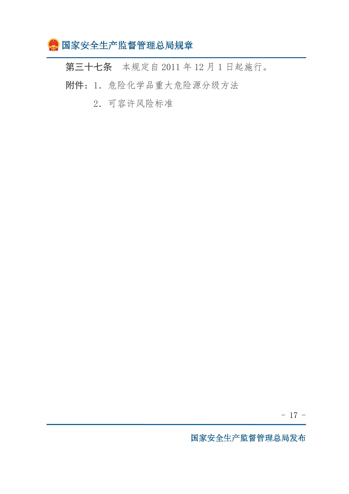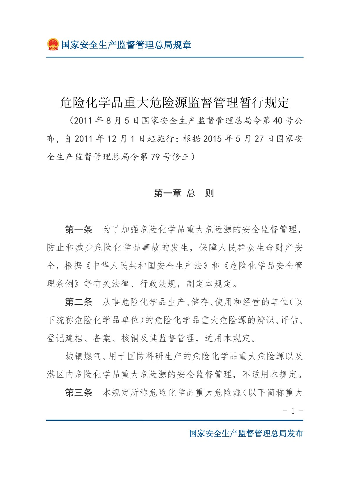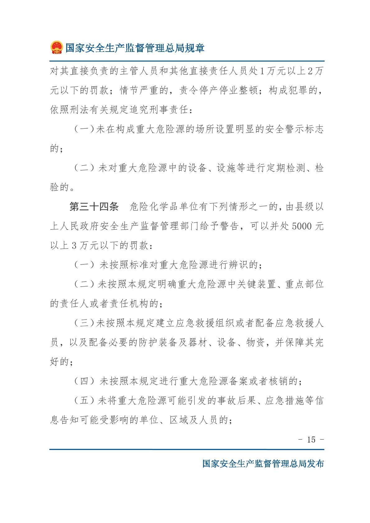 危险化学品重大危险源监督管理暂行规定