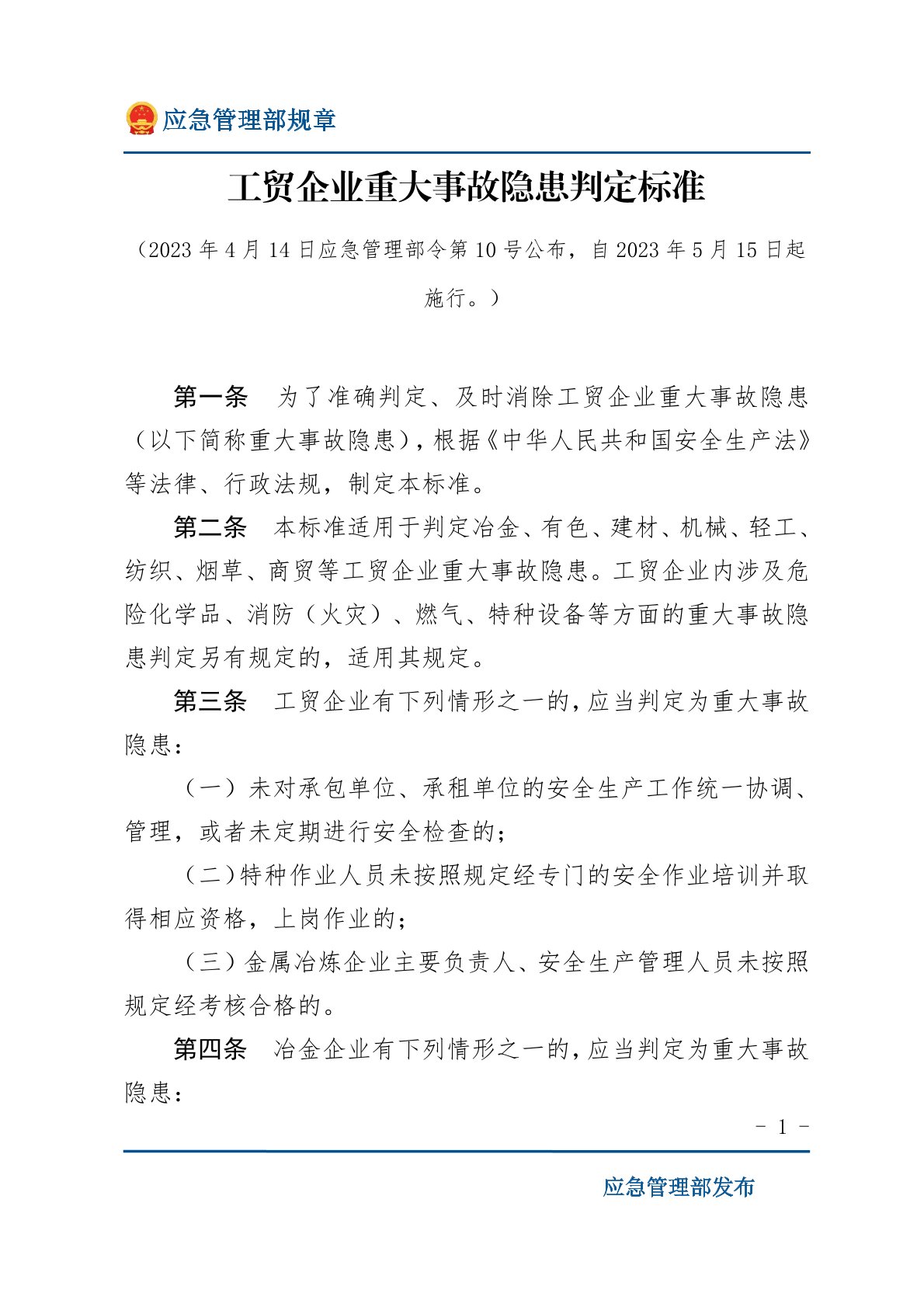 工贸企业重大事故隐患判定标准