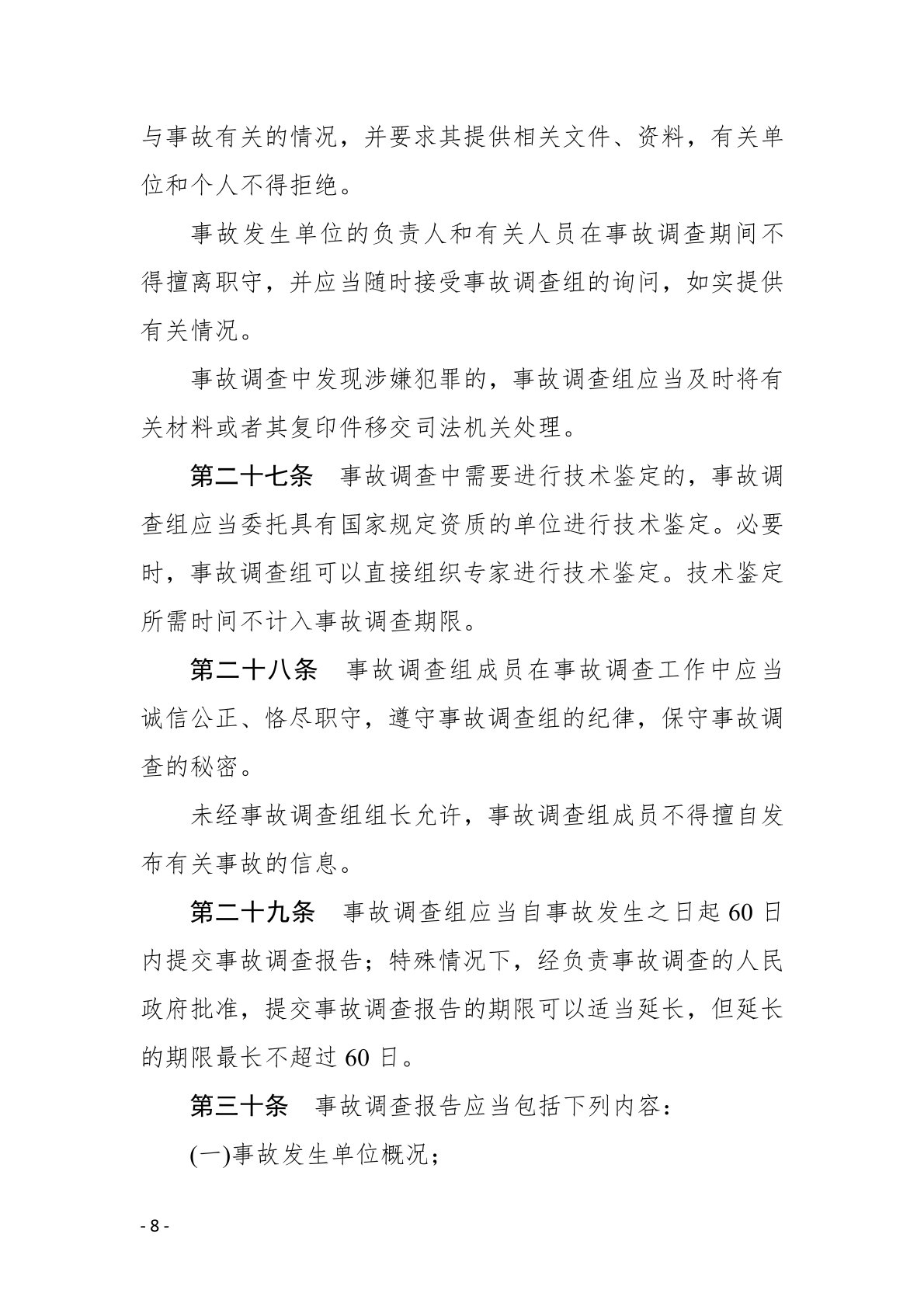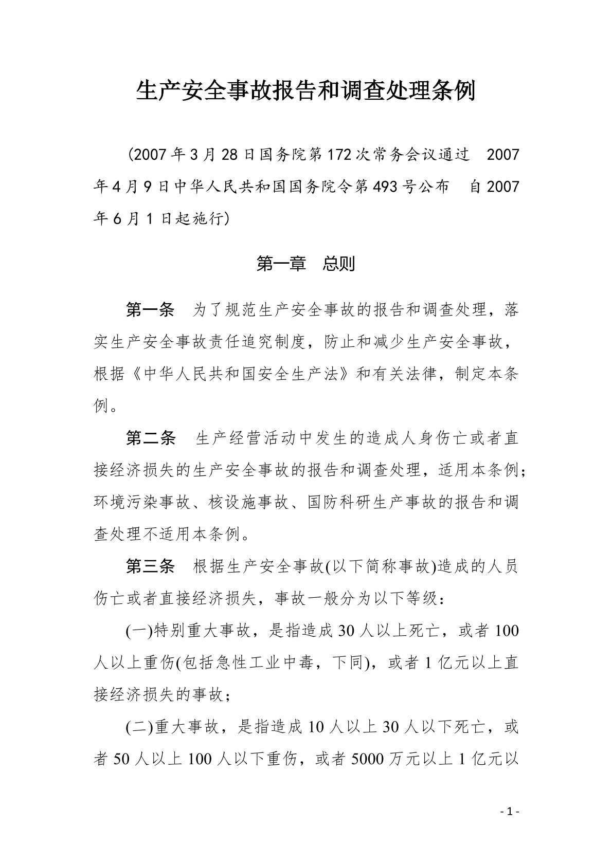 生产安全事故报告和调查处理条例