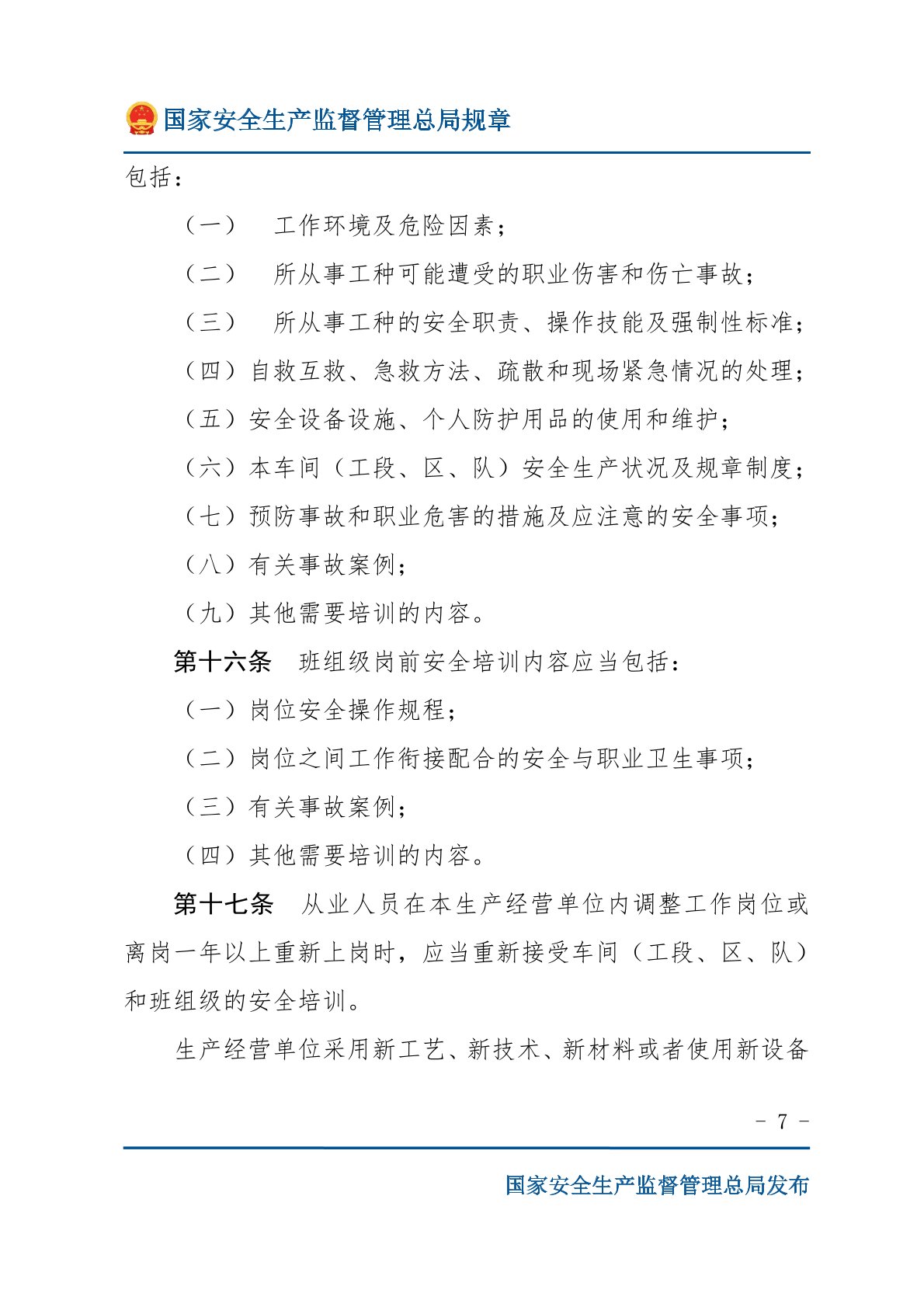 生产经营单位安全培训规定